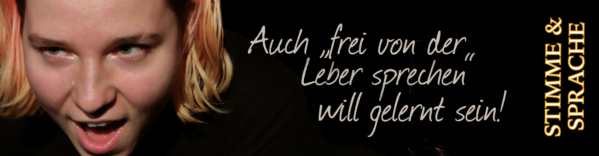 Klang, exakte Artikulation und die physiologischen Grundlagen des Sprechapparates sind ebenso Lehrinhalte dieses Basiskurses wie Sprechmuskeltraining, die Verbesserung der Sprachdynamik und das spielerische Arbeiten mit Lauten, Sprachrhythmus und Sprachmelodie. Unterrichtet wird die Sieb’sche Bühnensprache, doch auch nicht Schauspielinteressiere profitieren in diesem Kurs davon, dass die eigene Sprache deutlicher, klarer und dynamischer wird.